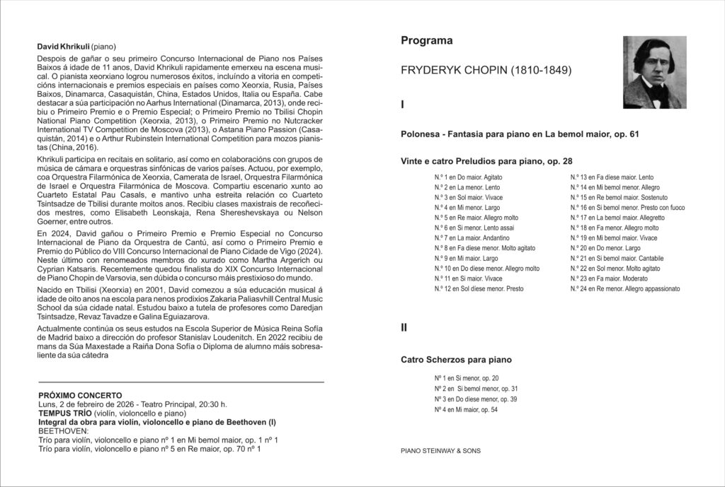 Izik-Dzurko actuará para la Sociedad Filarmónica de Pontevedra en una próxima temporada de conciertos.