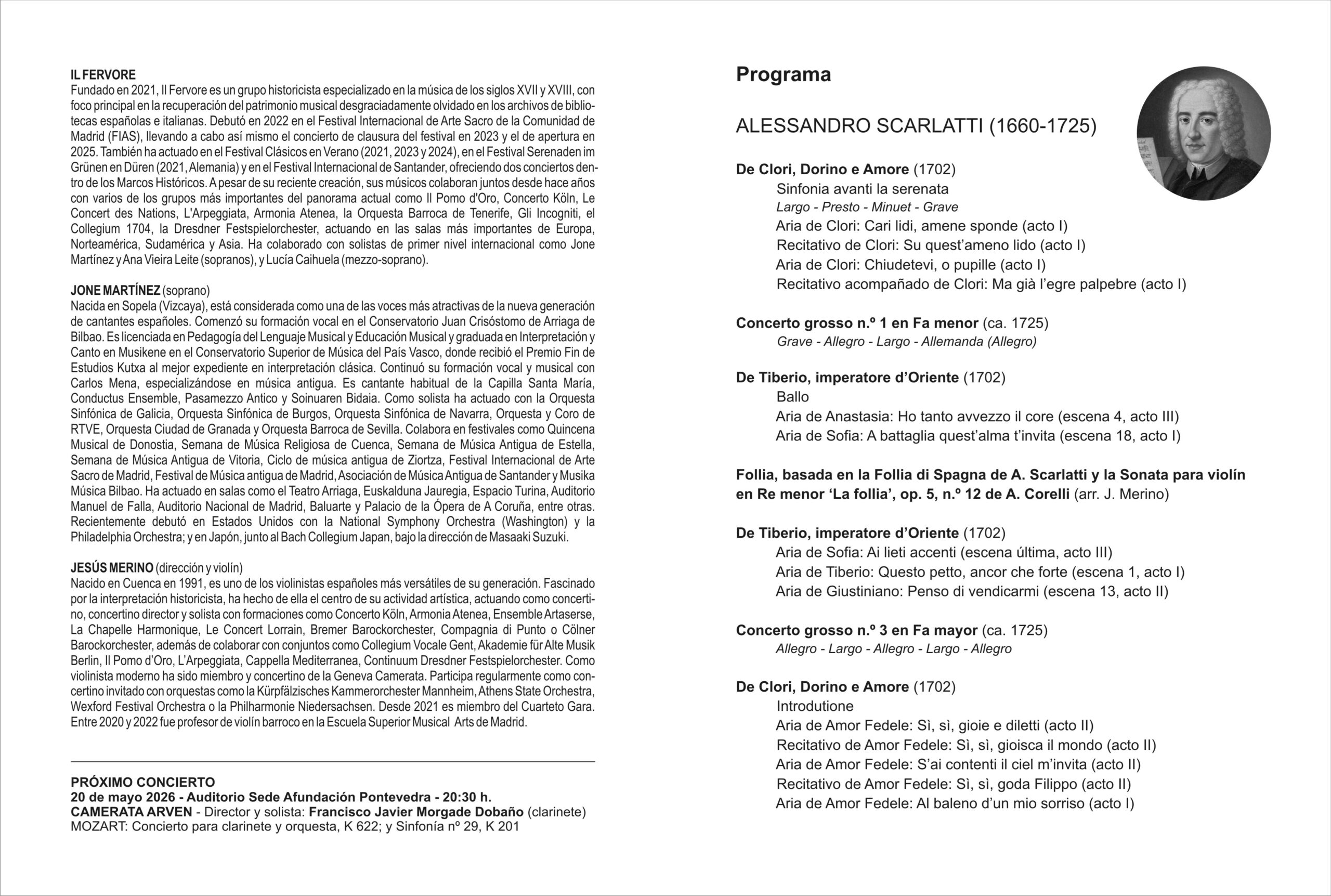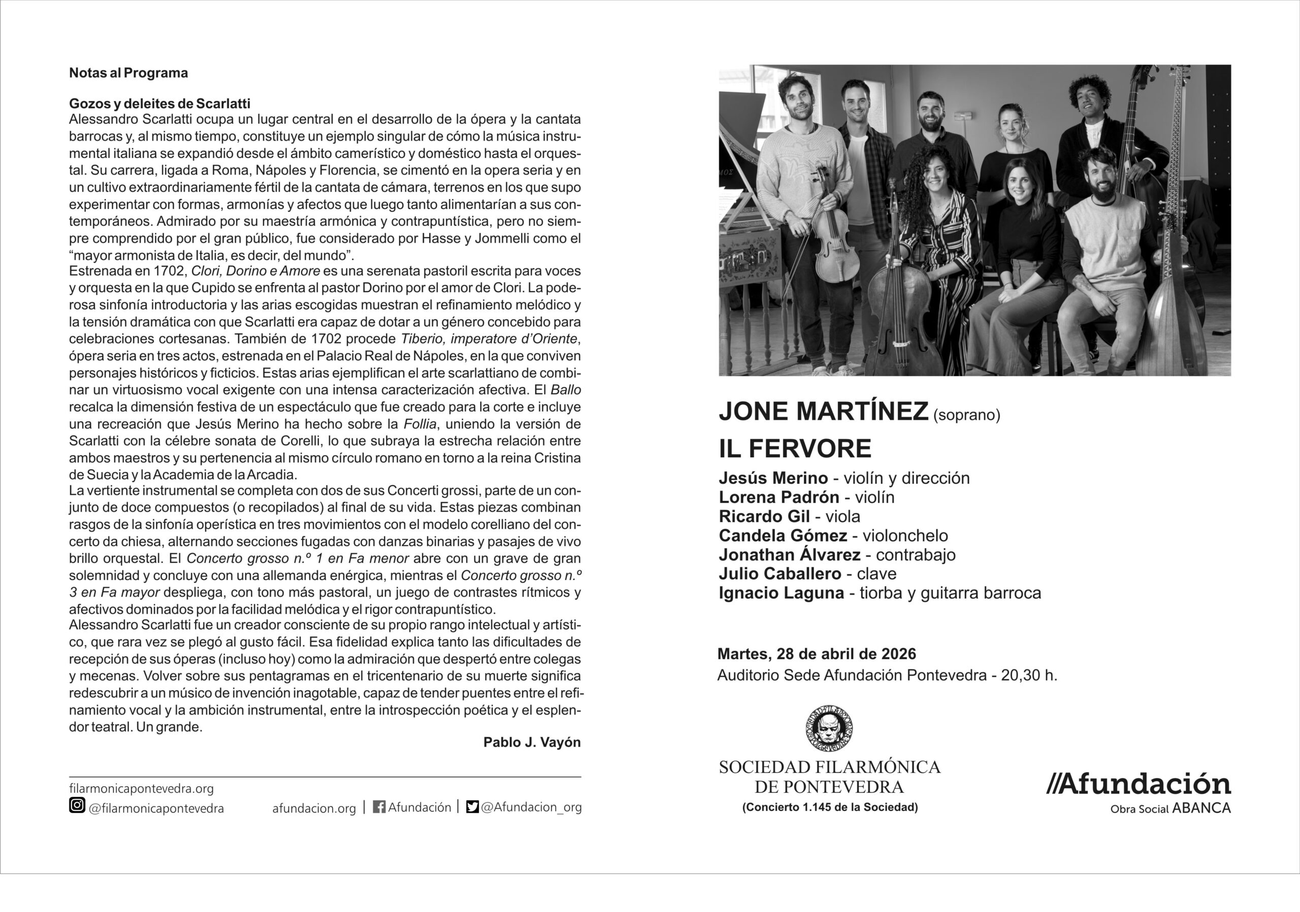 Programa del concierto de Jone Martínez (soprano) e Il Fervore – 28 de abril 10/04/2026 Noticias, Programas Conciertos